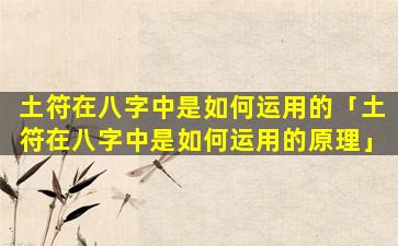 土 🌾 符 🐼 在八字中的 🐒 运用