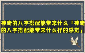 神 🐴 奇的八字搭配带来的好处 🦅