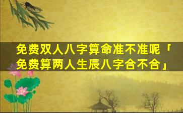 免费双人八字算命准不准取决于多种 🌾 因素: