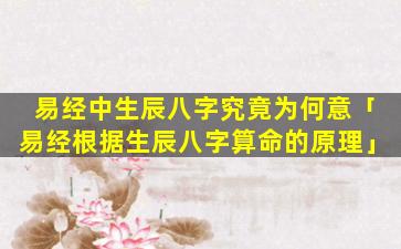 易经生辰八字 🌿 算 🐋 命原 🦆 理