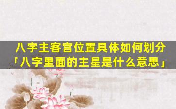 八字主 🦈 客宫是指根据出生年的天干地支,划,分出命主的命宫和财宫代表着命主一生的主要运势和财运走向。具体划分方法如下: