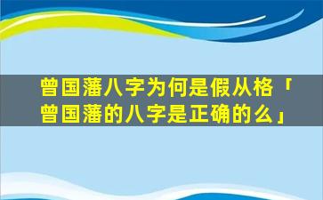 “曾国藩八字为何是假从格”的说法是错误的。根据传统八字命理 🌾 学曾国藩的八字为,: