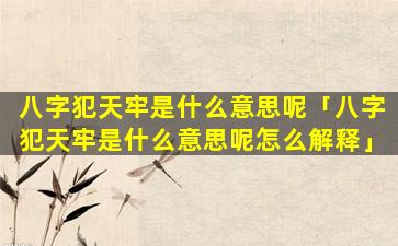 解释八字 🦉 犯天牢的组合主要 🐺 有以 🐞 下几种: