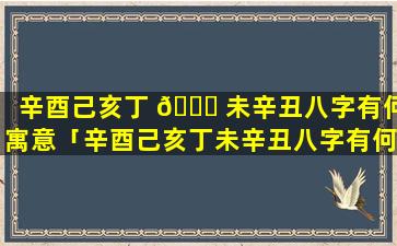 辛酉己 🕷 亥 🪴 丁未辛丑八字的寓 🕷 意