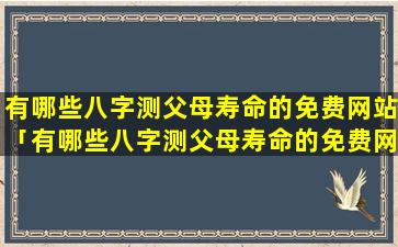 八 🦊 字中 🐶 与父母寿命有关的信息