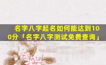 姓名八 💮 字起名的完 🌺 美评分标准 🐒 分(100 )