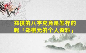 郑棋 🐬 元个 🐱 人资料 🐋