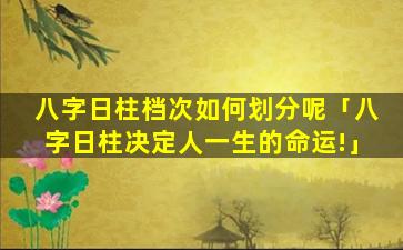 八字日柱是八字四柱中的最 🐵 后一个柱,代表了一个人的性格、命运和运势日 🦁 柱。档、次,按照日主和日支的强弱旺衰以及组合 🦍 关系来划分一般分为以下几种档次: