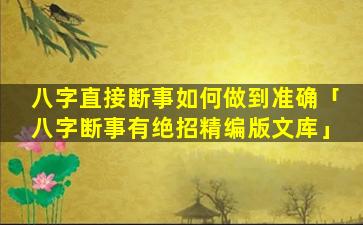 八字直接 🐯 断事准确 🕷 性的关 🦅 键