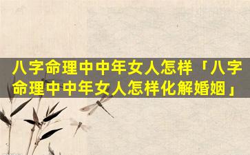 根据八字命 🦢 理化解中年女人 🐵 婚姻不利因素