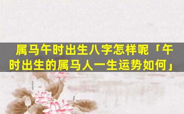 午时(11:0013:00)出生的属马人一 🌿 生运势