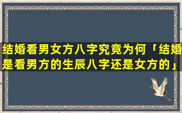 男女方 🐅 八字看结婚不同的原因 🐘
