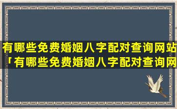 免费婚 🐅 姻八字配对查 🌷 询网站: