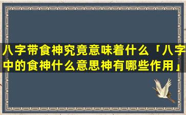 食 🦆 神在八 🌲 字命理中代表福气食、禄和子孙运食神。旺。衰吉凶需根据命局中的具体情况判断