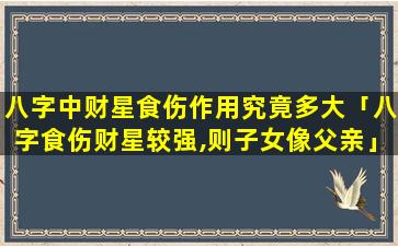 这 ☘ 句话的意 🐧 思是,根,据,八 🦋 字命理学如果一个人的八字中食伤财星比较旺盛那么他的子女会比较像父亲。