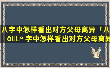 八 🌳 字分析仅供参考,不能完全断定父母 🐡 离异。