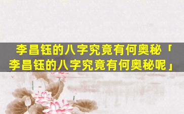 李昌钰的八字身强财旺,食,神,制,杀正官得 🦟 令驿马动可谓是富贵显达之命。而,驿,马。逢冲的格局也暗示了他会奔波劳碌在异乡发展壮大