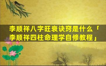 《李顺祥四柱命理学自 🌴 修教 🌷 程》