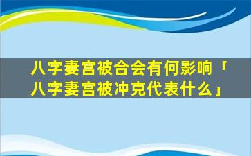 在八字命理中 🐋 ,妻宫代表一个 🪴 人的 🐦 配偶信息。当,妻宫。被合时意味着命主与伴侣的关系会受到外界的干扰和影响