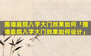 围 🌼 墙庭院八字大门效果如何设计