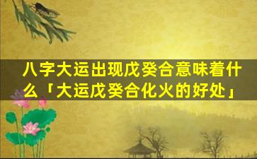 大运戊癸合化火的好处 🌾 :
