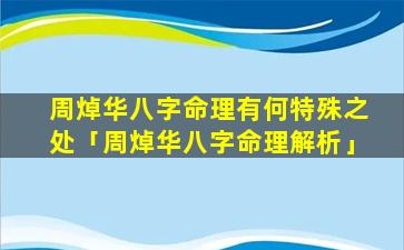 特殊之处周焯华的 🦢 八字命理有以下几个 🦈 特殊之处 🌷 :