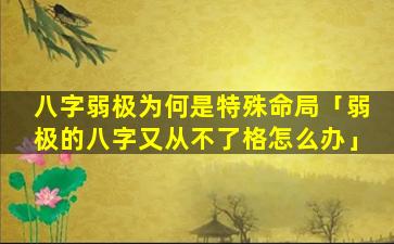 八字弱极之所以是 🦆 特 🦆 殊命局是 🦊 ,因为: