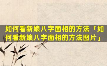 八字与面相 🐶 结 🐛 合看新娘 🌳