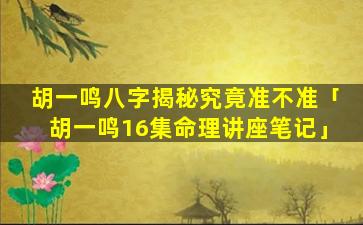 胡一鸣八字揭 🦢 秘的准确性 🐴