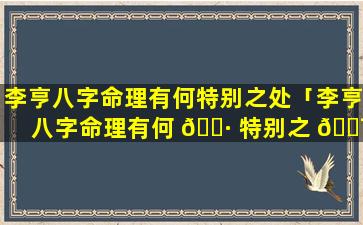 李亨 🐅 的八字命 🐝 理中 🪴 有以下几个特殊之处: