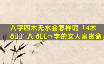 “八字四木无水”是指 🦁 八 🌵 字命格中日柱地支和四个时支均为木,且没有水元素。这“种情况在五行学说中被称为木旺无水”。