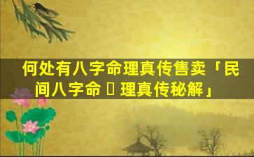 民 🌼 间 🦈 八字命理 🐒 真传秘解