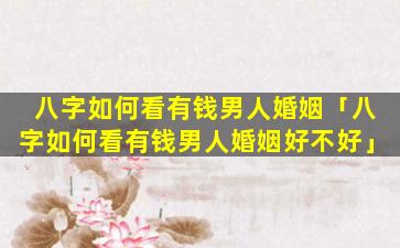 八字看 🌷 有钱 🦄 男人 🦄 的婚姻状况