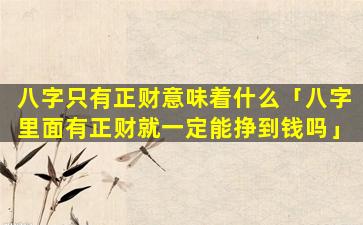 在八字命理中,只,有正财 🍁 而没有偏财一般有以下几种含义: