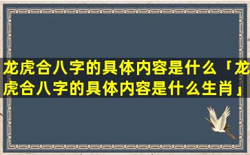 龙和虎在生肖 🐼 中不相合,因此不存在龙虎合八字的 🍀 说法。