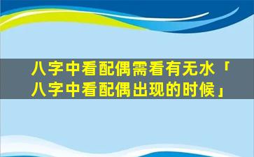 该说法并不正确。八字中看配偶需参 💮 考多个因素 🌲 ,包括日柱、时柱、桃,花。位等而不仅仅是看有无水