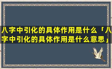 八字 🐺 中引化的具体作用包括以下几个方面: