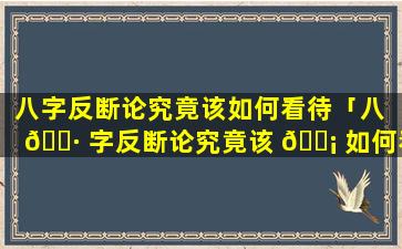 理智对待因此,在,看待人时应理智对待八字反断论。它,可。以作为一种参考但不能作为唯一的判断依据需要结合 🍀 整体命局、大,运。流年以及个人因素才能做出较为准确的判断