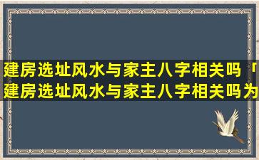 在风水学中 🐴 ,建房选址 🌻 与家主八字确实有一定的相关性八字。是,根。据。出生时间推算出的一个人的出生年月日時辰的阴阳五行属性它代表 💐 了一个人的先天命理而风水则是研究房屋建筑物所在环境与人类命运之间的关系