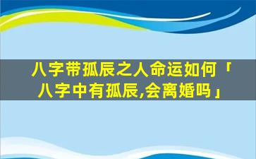 八 🦄 字 🐵 中出现“孤辰”并不一定会直接导致离婚。