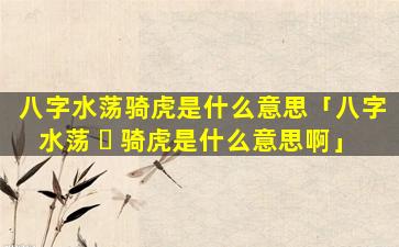 “八字水荡骑虎”是 🌲 一句民间俗语,用,来形容一个人命格 🐺 不吉 🐝 利运势不佳。