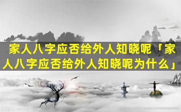 对于家 🐠 人八字是否应给外人知晓,存在不同的观点: