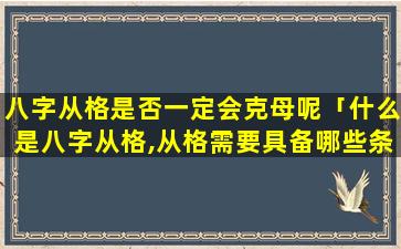 否 🐠 ,八 🌴 字从格不一定一定 🌷 会克母。