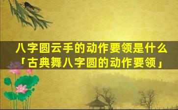 八字圆云手 🕊 是太极拳中一个重要的招式,其 🐡 动作要领如下: