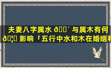在 🌲 五行学说中 🐘 ,水和木结合在婚姻中具有以下特征: