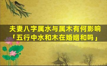 水命 🌻 和木命 🌿 结合的影 🦅 响