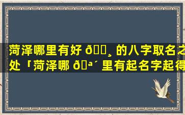 菏泽 🌹 起名服 🐴 务机构 🦢 :