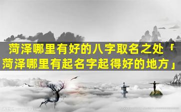 菏泽 🐱 八字取名推荐地 💮 点 🦉