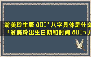 翁 🌻 美玲生 🐘 辰八 🦋 字:
