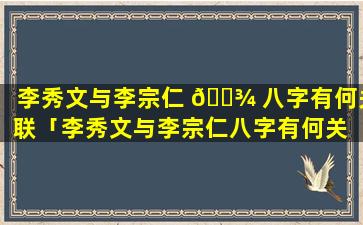 李秀文和李 🐛 宗仁没有八 🦊 字关联。